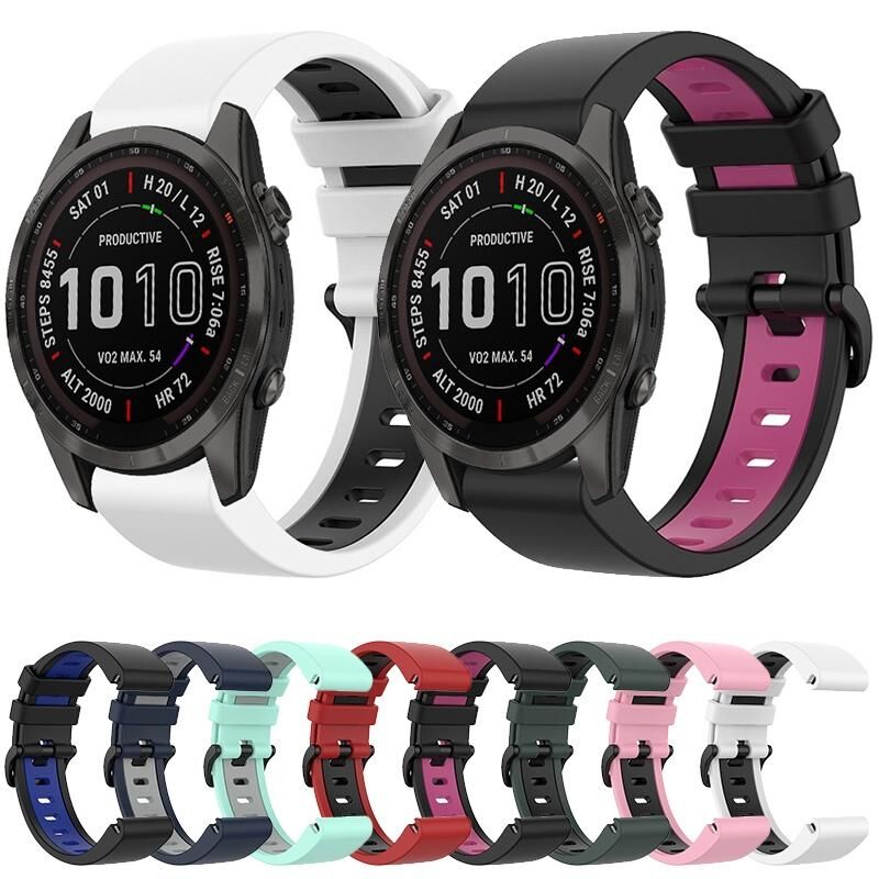 Για Garmin Fenix 7S Solar λουρί ρολογιού σιλικόνης αθλητικό διχρωμίας 22mm (Λευκό+Μαύρο)