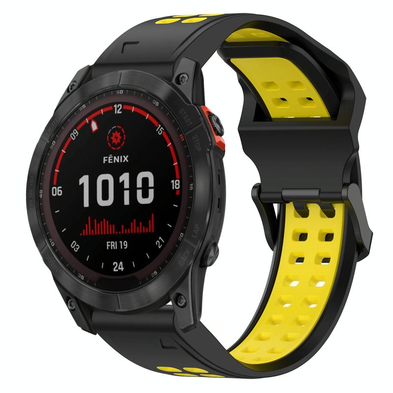 Για Garmin Fenix 7S Solar Λουράκι Σιλικόνης 20mm με Διπλή Αγκράφα (Μαύρο+Κίτρινο)