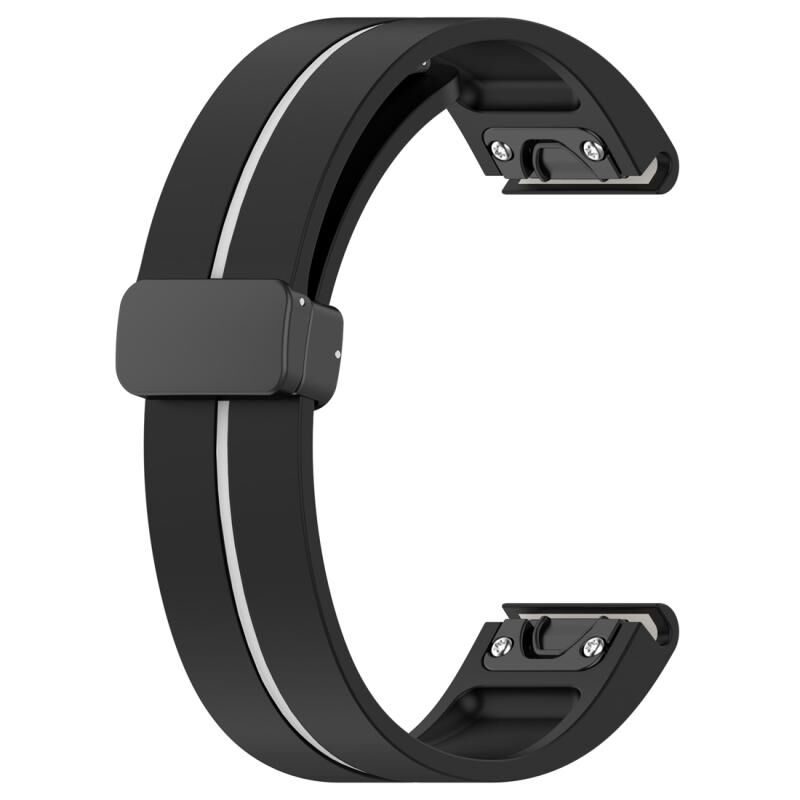 Για Garmin Fenix 7S Δύο χρώμα μαγνητική πτυσσόμενη μαύρη πόρπη σιλικόνης ρολόι μπάντα (μαύρο λευκό)