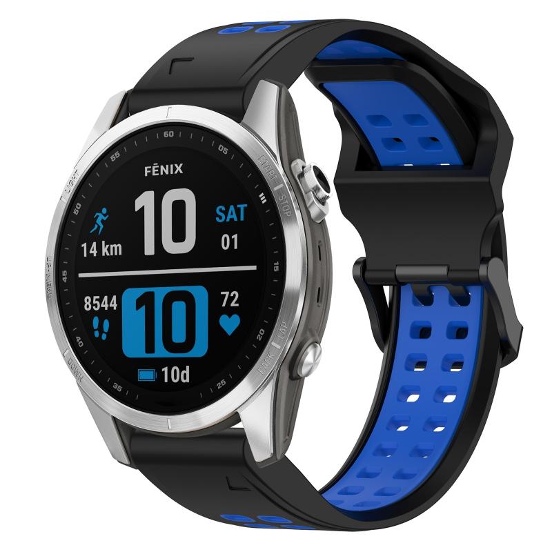 Για Garmin Fenix 7S Λουράκι Σιλικόνης 20mm με Αντίστροφη Αγκράφα Δύο Χρωμάτων (Μαύρο+Μπλε)
