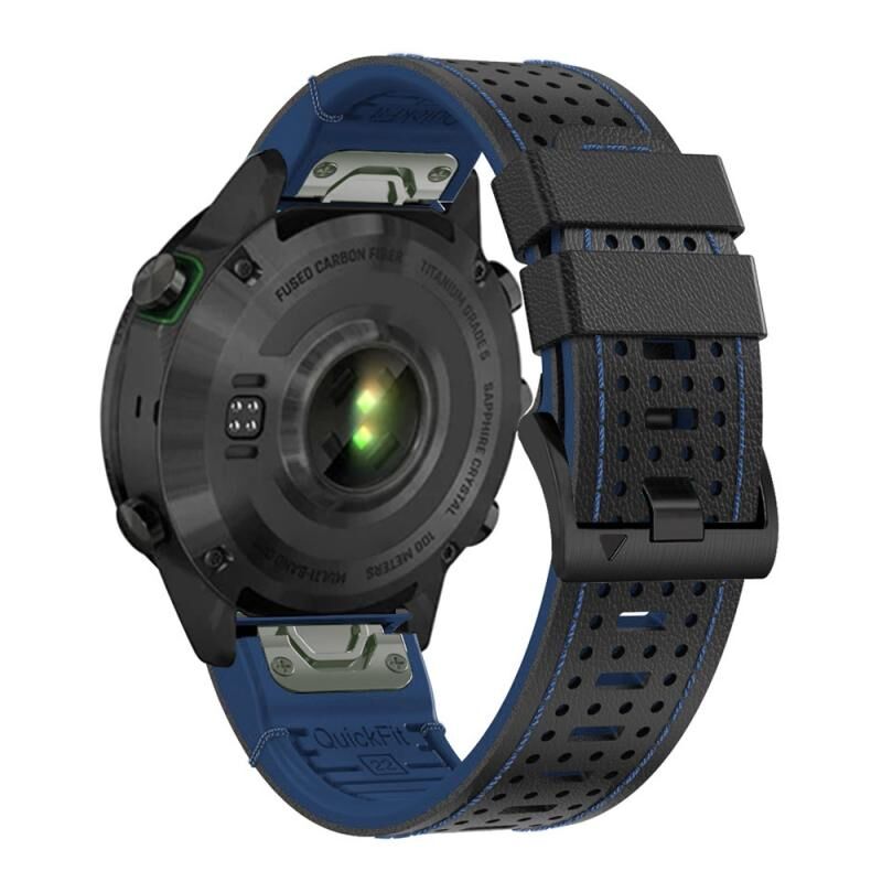 For Garmin Fenix 7X 26mm Dot Hole Silicone Leather Quick Release Watch Band(Black Blue)