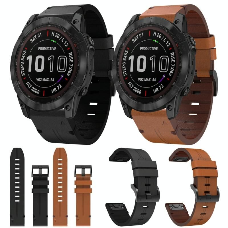 Για το Garmin Fenix 7X 26mm δερμάτινη ζώνη ρολογιού με ατσάλινη πόρπη (μαύρο)