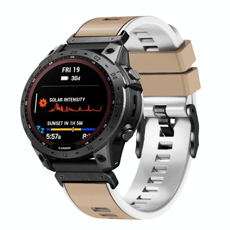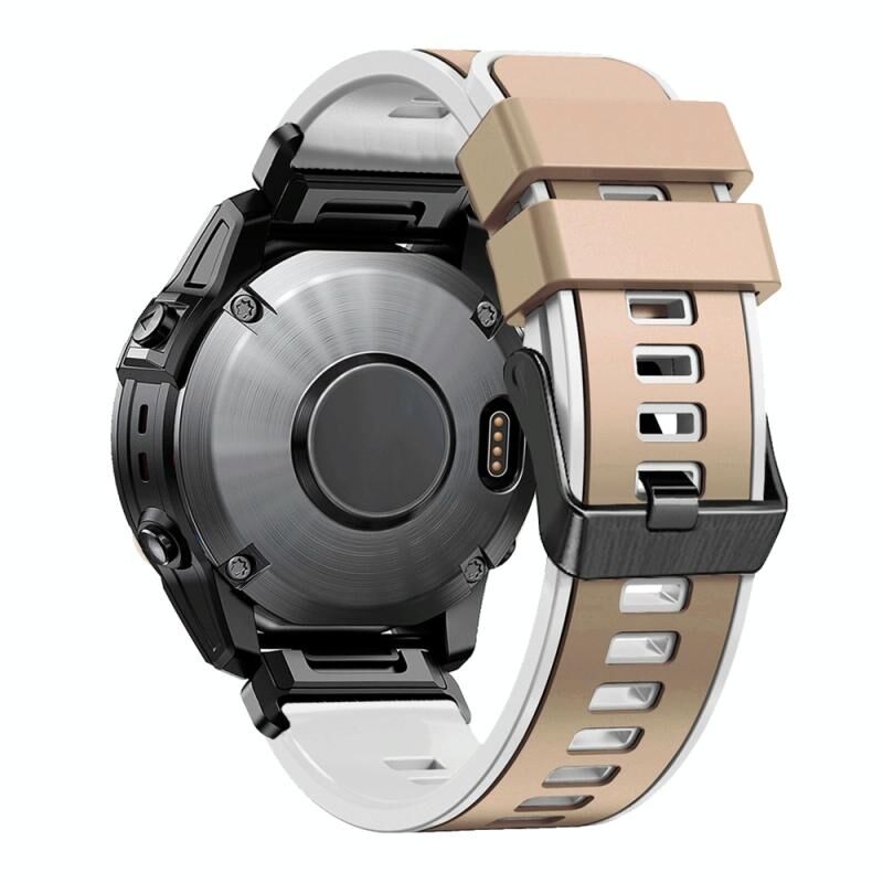 For Garmin Fenix 7X 26mm Plain Weave Two-Color Quick Release Silicone Watch Band(khaki White)