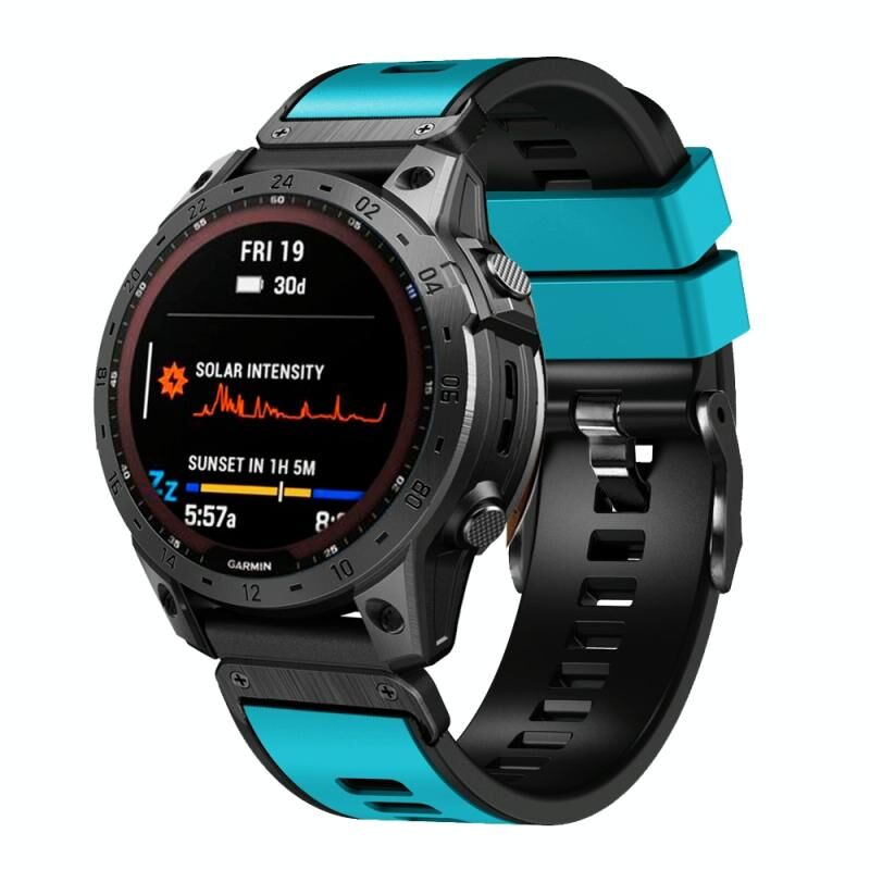 For Garmin Fenix 7X 26mm Plain Weave Two-Color Quick Release Silicone Watch Band(Sky Blue Black)