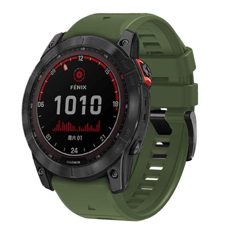 Για το Garmin Fenix 7X 26 χιλιοστά στερεό χρώμα χάλυβα πόρπη σιλικόνης γρήγορη απελευθέρωση ρολόι μπάντα (Στρατού πράσινο)