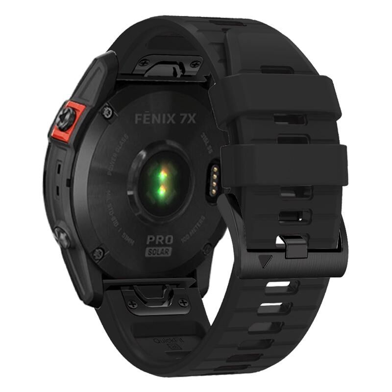 Για Garmin Fenix 7X 26mm στερεό χρώμα χάλυβα πόρπη σιλικόνης γρήγορη απελευθέρωση ρολόι μπάντα (μαύρο)