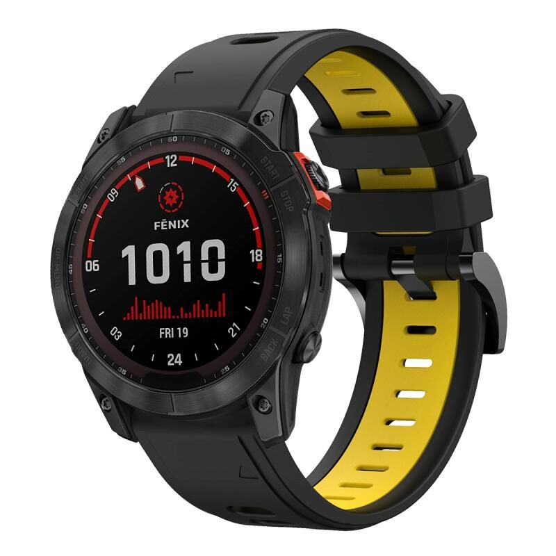 Για το Garmin Fenix 7X 26 χιλιοστά δύο χρωμάτων αθλητική ζώνη σιλικόνης ρολόι (μαύρο + κίτρινο)
