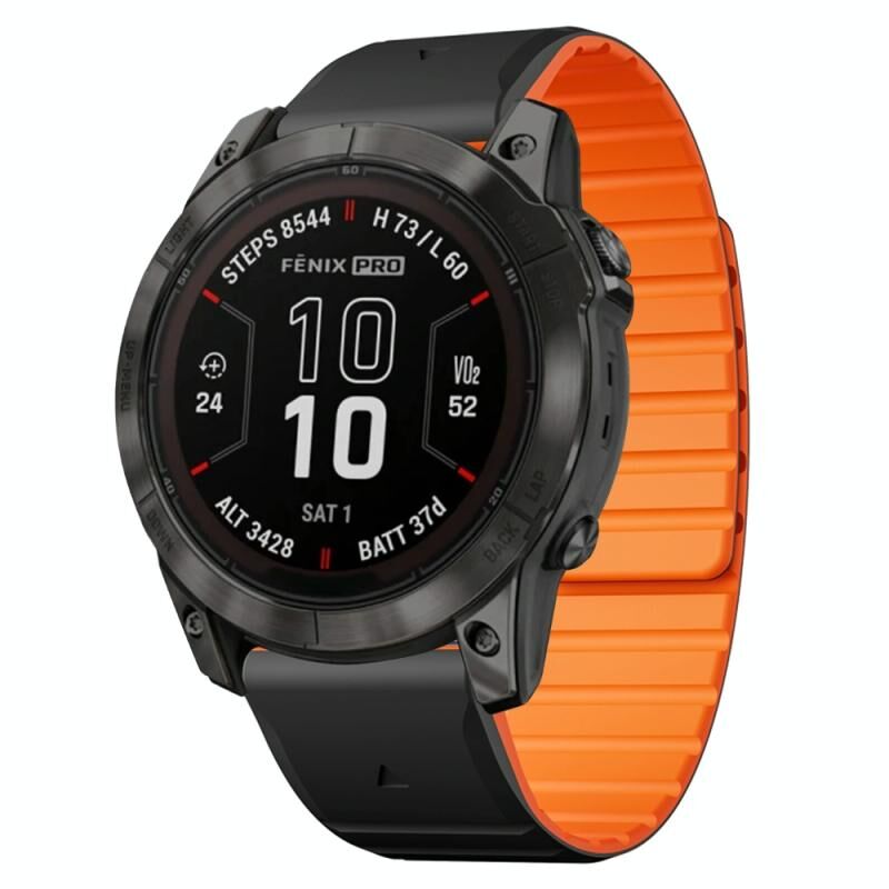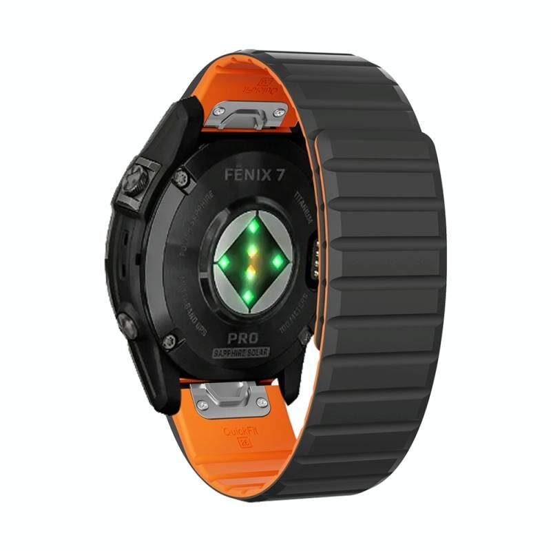 Για Garmin Fenix 7X / 7X Pro Διπλό χρώμα μαγνητική γρήγορη απελευθέρωση 26 χιλιοστά σιλικόνης ρολόι μπάντα (μαύρο + πορτοκαλί)