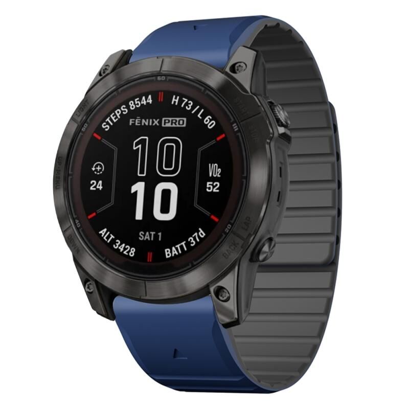 Για Garmin Fenix 7X / 7X Pro Διπλό χρώμα μαγνητική γρήγορη απελευθέρωση 26 χιλιοστά σιλικόνης ρολόι μπάντα (σκούρο μπλε + μαύρο)