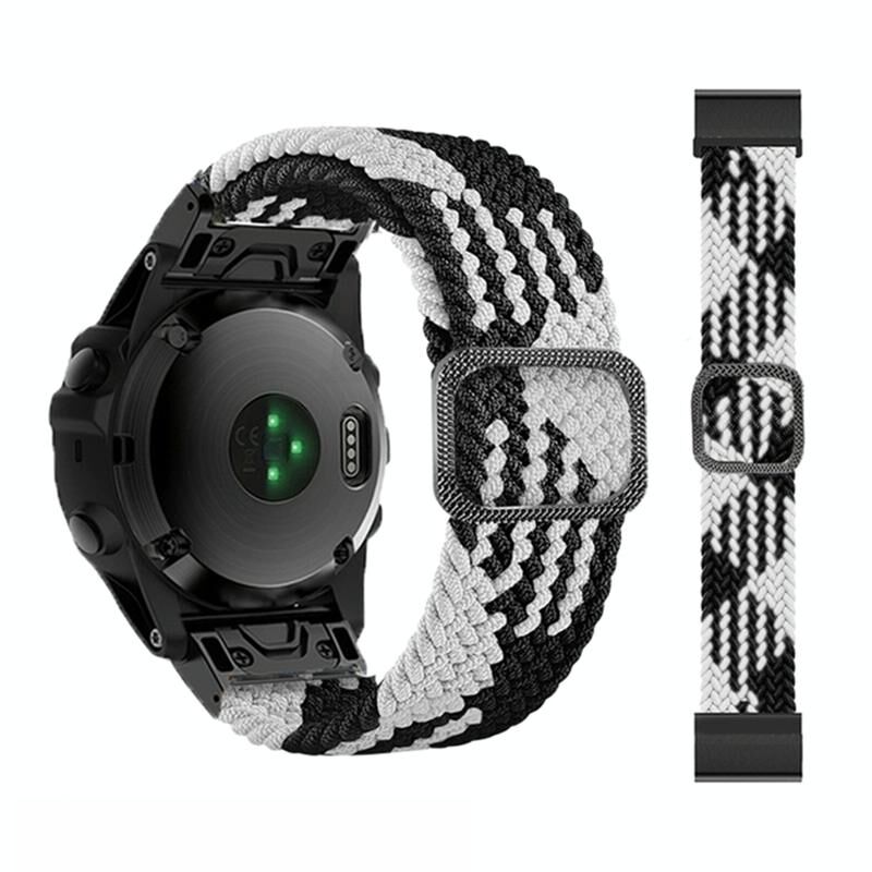 Για Garmin Fenix 7X Ρυθμιζόμενη ζώνη ρολογιού από νάιλον με πλεξούδα ελαστικότητας (μαύρο λευκό)