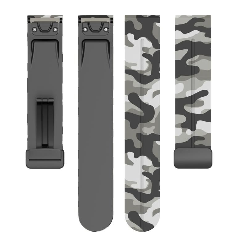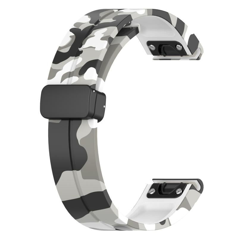For Garmin Fenix 7X Magnetic Folding Black Buckle Color Printed Silicone Watch Band(Camouflage White)