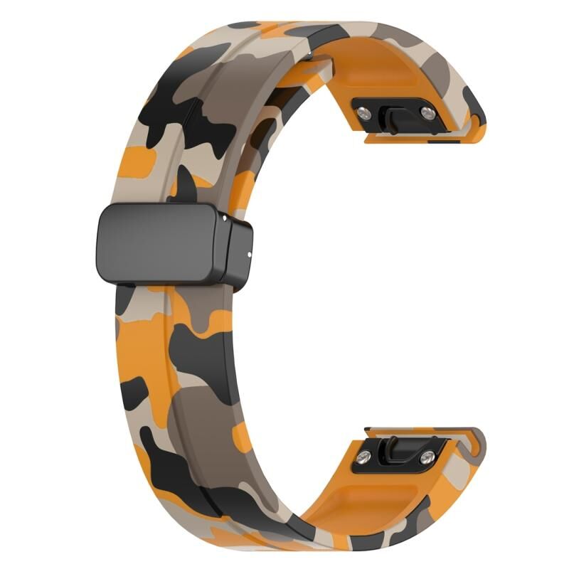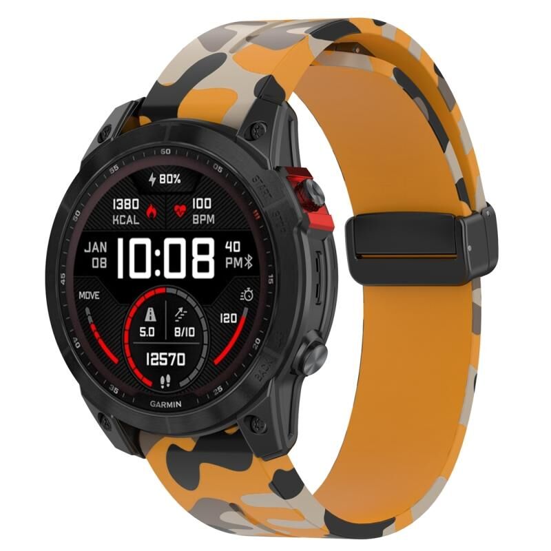 For Garmin Fenix 7X Magnetic Folding Black Buckle Color Printed Silicone Watch Band(Camouflage Yellow)