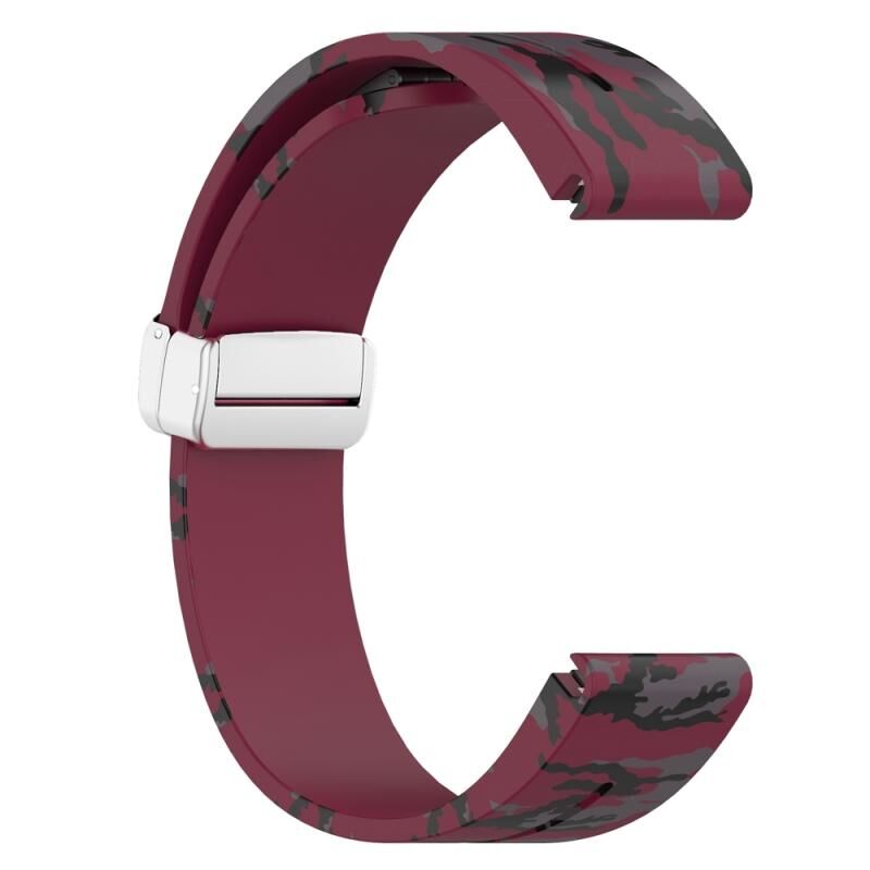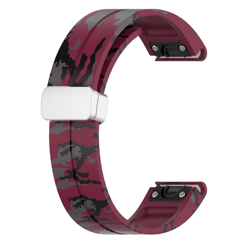 For Garmin Fenix 7X Magnetic Folding Silver Buckle Color Printed Silicone Watch Band(Camouflage Wine Red)