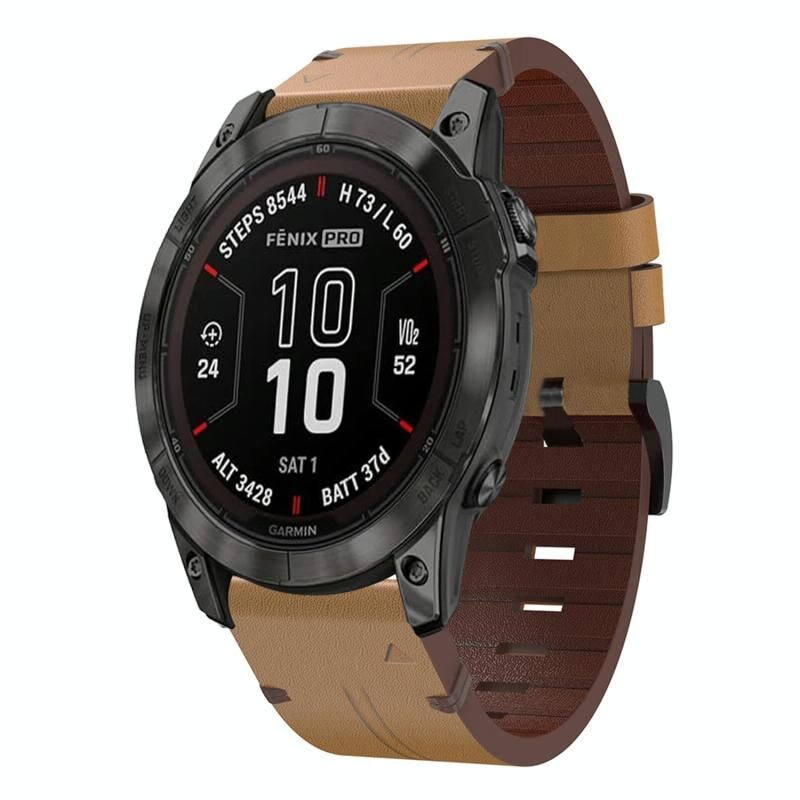 Για το Garmin Fenix 7X Pro 51mm δερμάτινη ατσάλινη πόρπη 26mm (ανοιχτό καφέ)