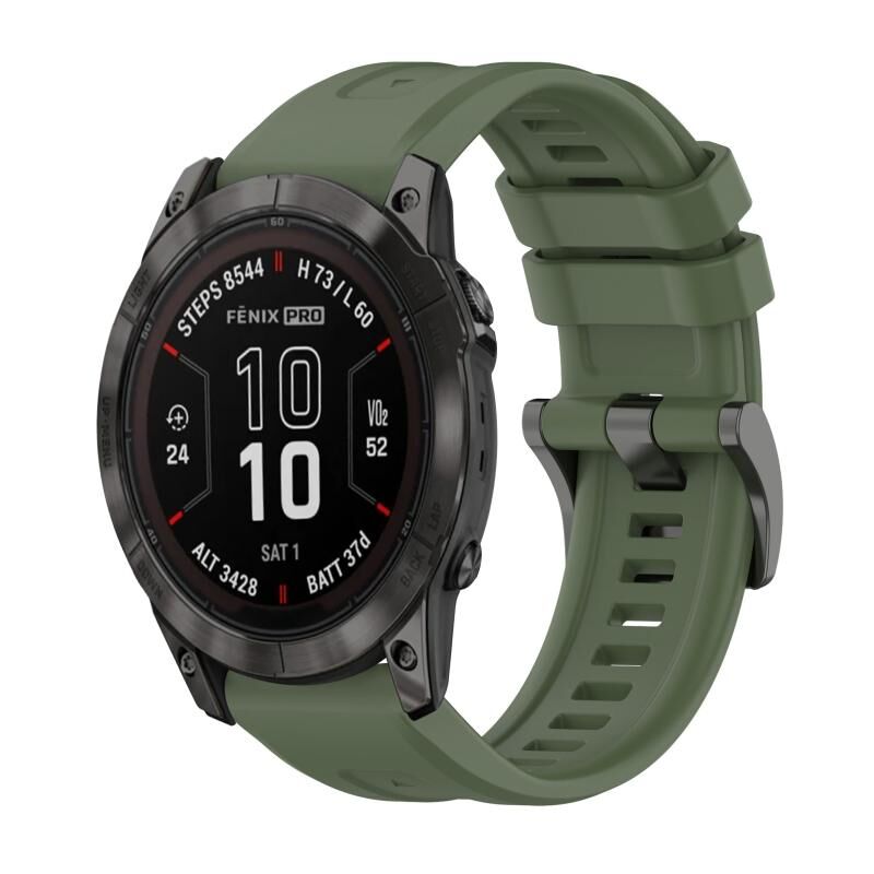 Για Garmin Fenix 7X Pro 51mm καθαρό χρώμα χάλυβα πόρπη 26mm σιλικόνης ρολόι μπάντα (σκούρο πράσινο)