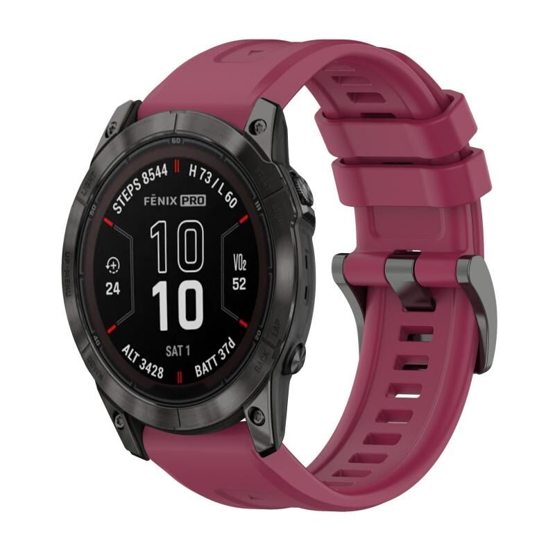 Για Garmin Fenix 7X Pro 51mm καθαρό χρώμα ατσάλινη πόρπη 26mm σιλικόνης ρολόι μπάντα (κόκκινο κρασί)