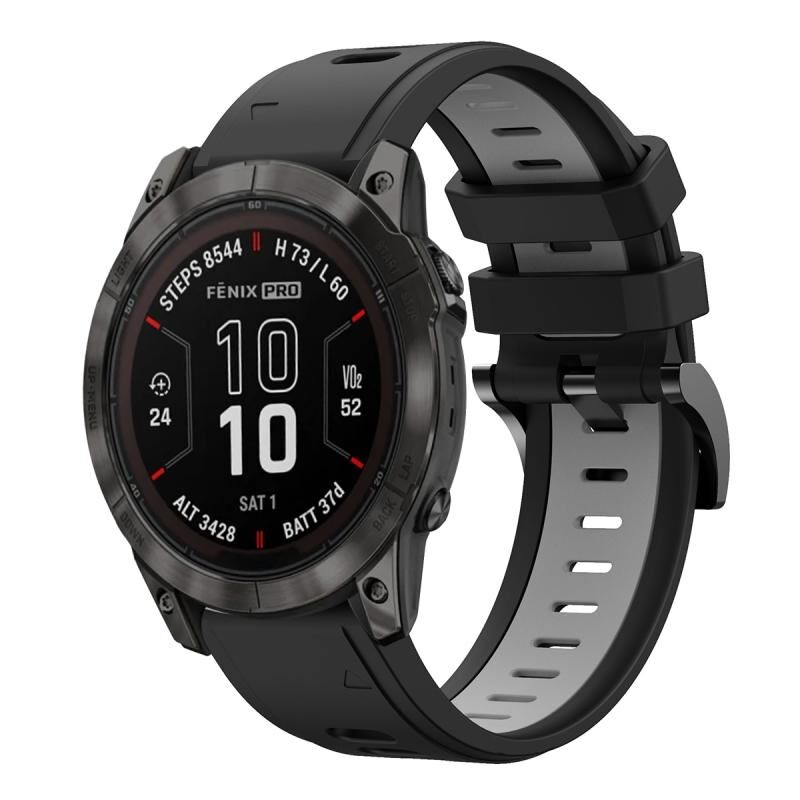Για το Garmin Fenix 7X Pro 51mm Αθλητισμός Δύο χρώματα 26mm σιλικόνης ρολόι μπάντα (μαύρο + γκρι)