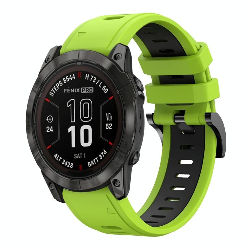 Για Garmin Fenix 7X Pro 51mm Αθλητισμός Δύο χρώμα 26mm σιλικόνης ρολόι μπάντα (Lime + Μαύρο)