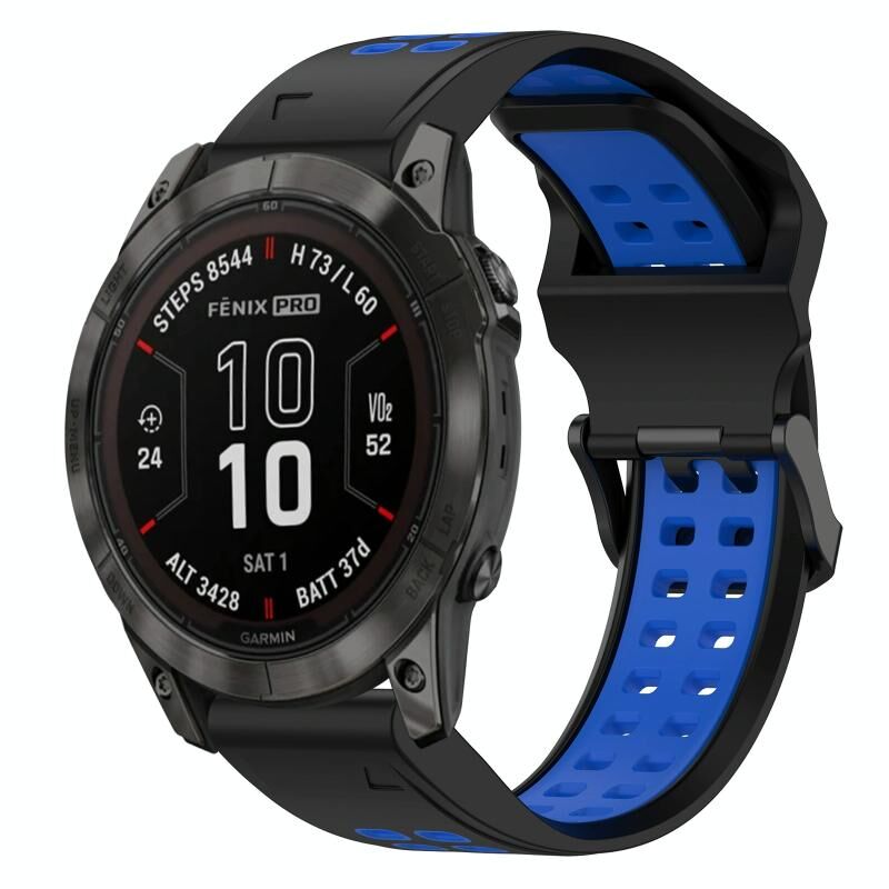 Για Garmin Fenix 7X Pro 51mm Δίχρωμο Αντίστροφο Κούμπωμα 26mm Σιλικόνης Ρολόι Μπρασελέ (Μαύρο+Μπλε)