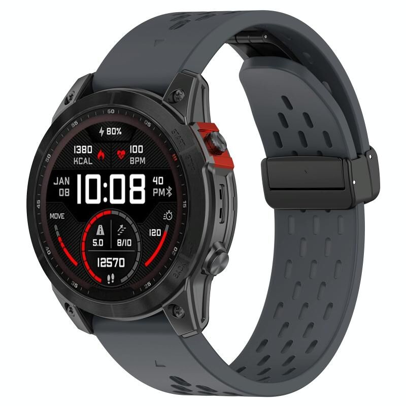 Για Garmin Fenix 7X Γρήγορη απελευθέρωση οπές μαγνητική πόρπη σιλικόνης ρολόι μπάντα (σκούρο γκρι)