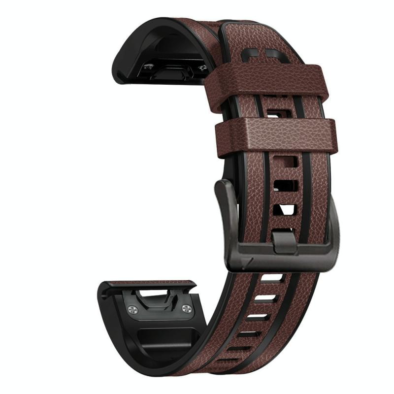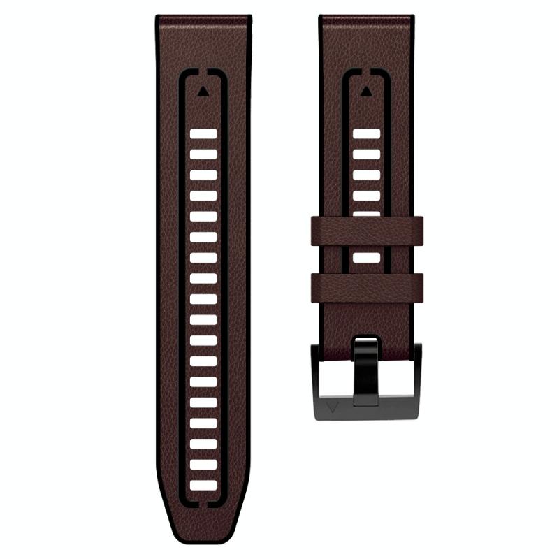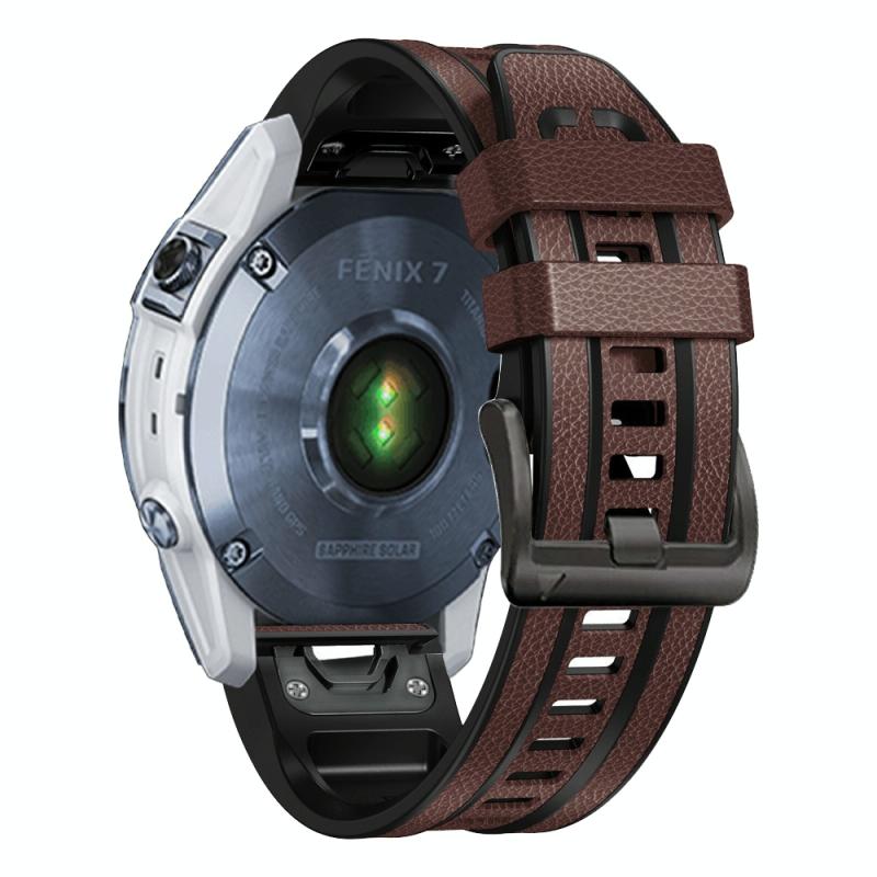 Για Garmin Fenix 7X Λουράκι Ρολογιού Σιλικόνης + Δέρματος με Γρήγορη Απελευθέρωση (Σκούρο καφέ)