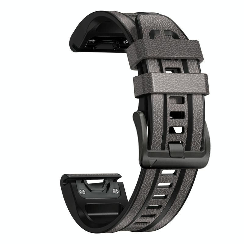 Για Garmin Fenix 7X Λουράκι Ρολογιού Σιλικόνης + Δέρματος με Γρήγορη Απελευθέρωση (Καφέ)