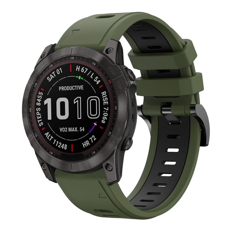 Για Garmin Fenix 7X Solar 26mm δύο χρωμάτων αθλητική ζώνη σιλικόνης ρολόι (πράσινο στρατού + μαύρο)