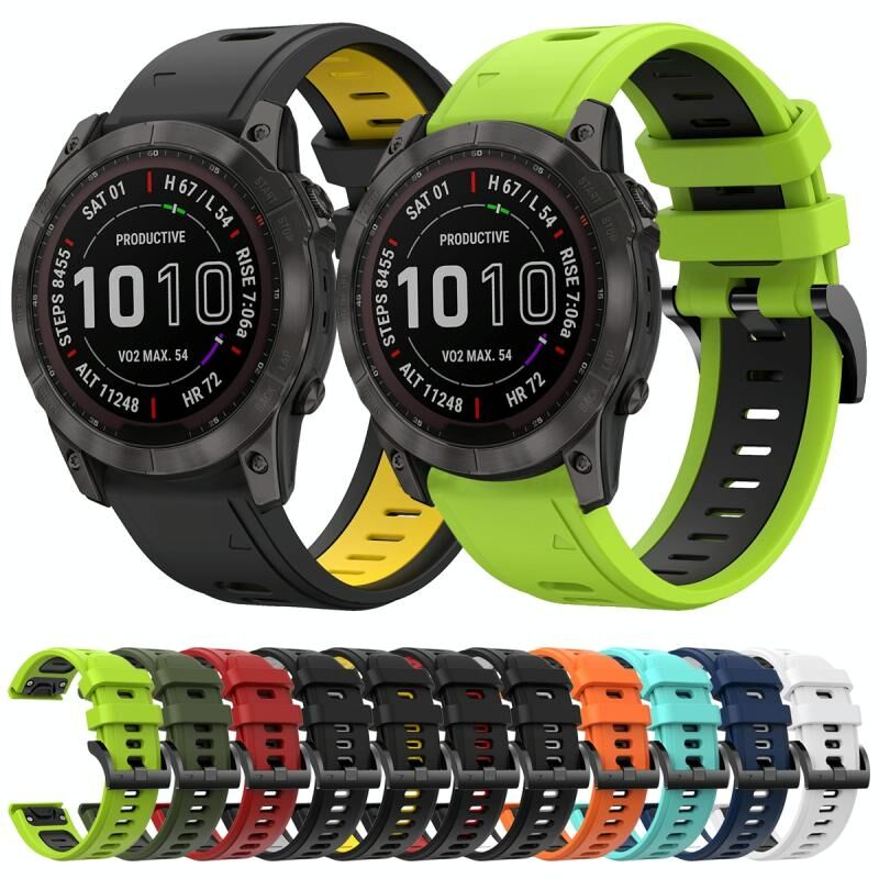 Για Garmin Fenix 7X Solar 26mm δύο χρωμάτων αθλητική ζώνη σιλικόνης ρολόι (πράσινο χρώμα + μαύρο)