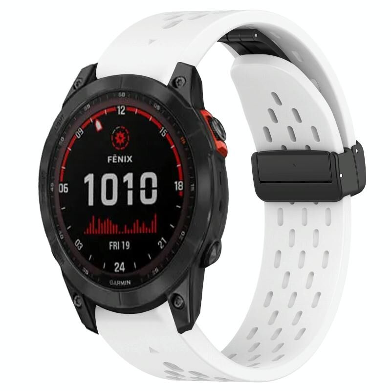 Για Garmin Fenix 7X Solar, Πτυσσόμενη Αγκράφα 26mm, Λουράκι Σιλικόνης για Ρολόι (Λευκό)