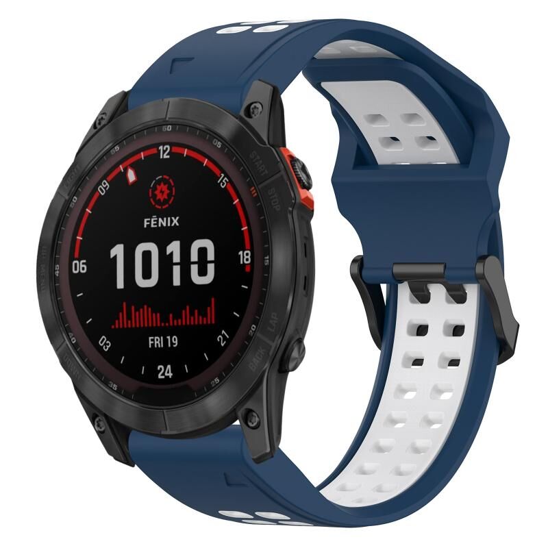 Ανταλλακτικό λουράκι σιλικόνης 26mm δύο χρωμάτων (μπλε+άσπρο) με ανάποδη αγκράφα για Garmin Fenix 7X Solar