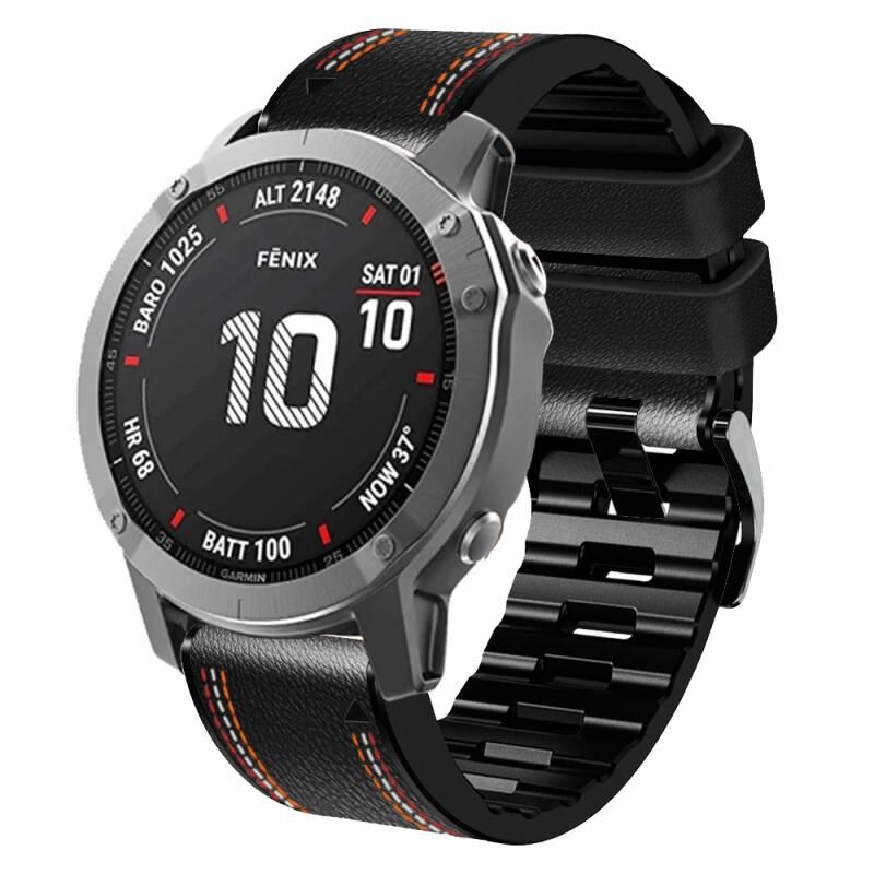 Λουρί ρολογιού σιλικόνης-δέρματος για Garmin Fenix 7X, με τριχρωμία ραφής (Λευκό)