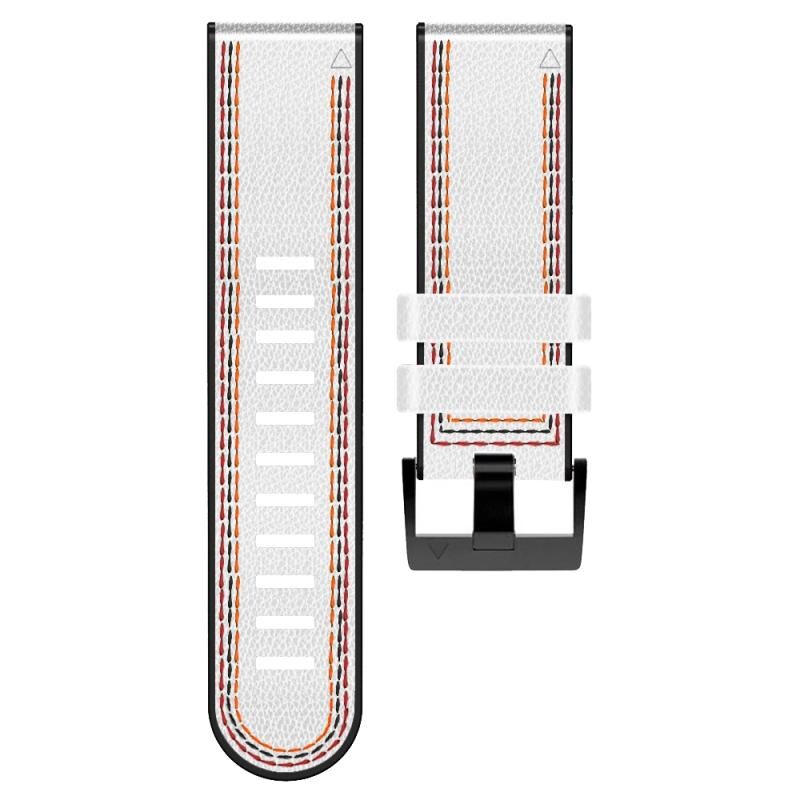 Λουρί ρολογιού σιλικόνης-δέρματος για Garmin Fenix 7X, με τριχρωμία ραφής (Λευκό)