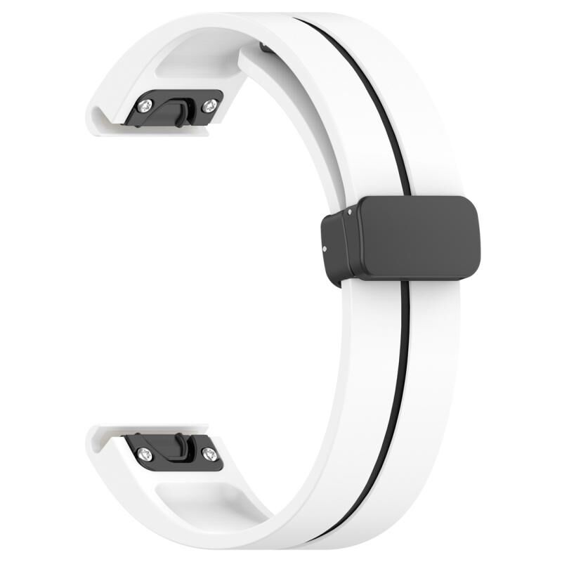 Για Garmin Fenix 7X Δύο χρώματα μαγνητική πτυσσόμενη μαύρη πόρπη σιλικόνης ρολόι μπάντα (λευκό μαύρο)