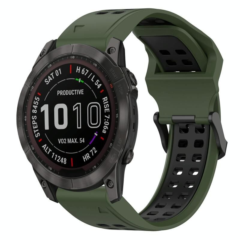 Ανταλλακτικό λουράκι σιλικόνης 26mm διπλού χρώματος με ανάποδη αγκράφα για Garmin Fenix 7X (Χακί+Μαύρο)