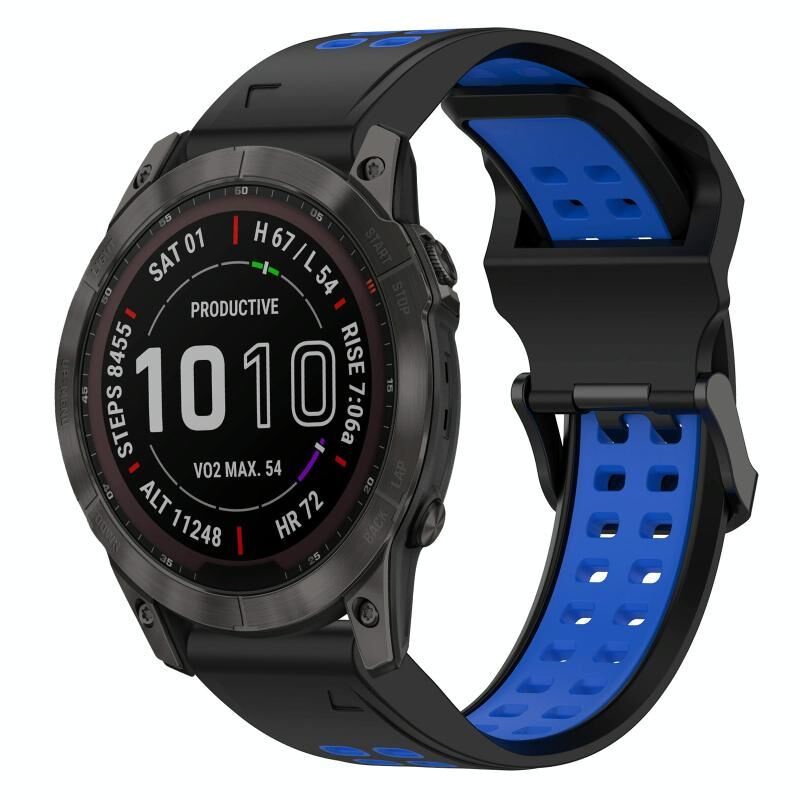 Ανταλλακτικό λουράκι σιλικόνης 26mm δύο χρωμάτων (μαύρο+μπλε) με αναστρέψιμη αγκράφα για Garmin Fenix 7X