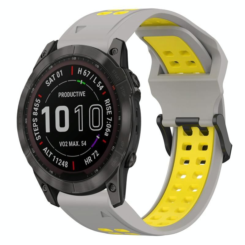 Ανταλλακτικό λουράκι σιλικόνης 26mm δύο χρωμάτων (Γκρι+Κίτρινο) με αναστρέψιμη αγκράφα για Garmin Fenix 7X