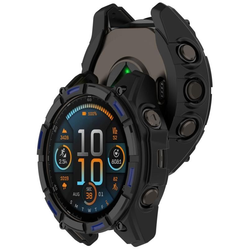 Για Garmin Fenix 8 AMOLED 43mm Armor κοίλο TPU μισή κάλυψη ρολόι προστατευτική θήκη (μαύρο μπλε)