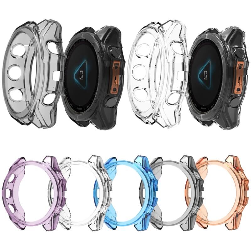 Για Garmin Fenix 8 AMOLED 43mm Half Pack Hollow TPU ρολόι προστατευτική θήκη (διαφανές μοβ)