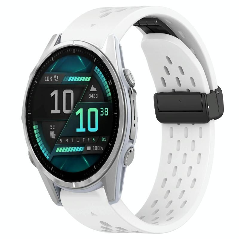 Για Garmin Fenix 8 AMOLED 43mm τρύπα πτυσσόμενη πόρπη 20mm σιλικόνης ρολόι μπάντα (λευκό)