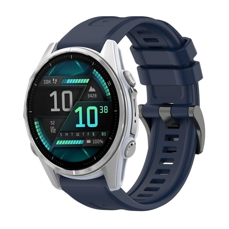 Για το Garmin Fenix 8 AMOLED 43 χιλιοστά καθαρό χρώμα χάλυβα πόρπη 20 χιλιοστά σιλικόνης ρολόι μπάντα (Midnight Blue)