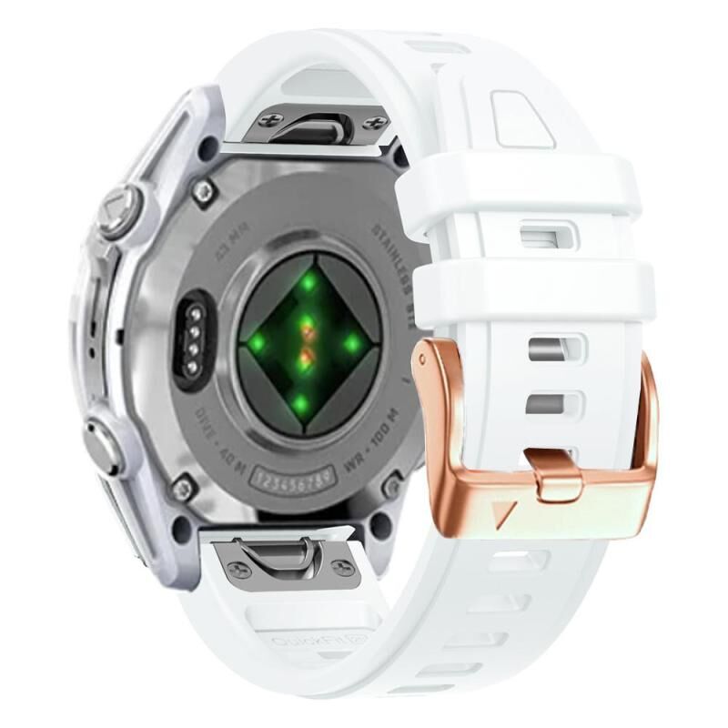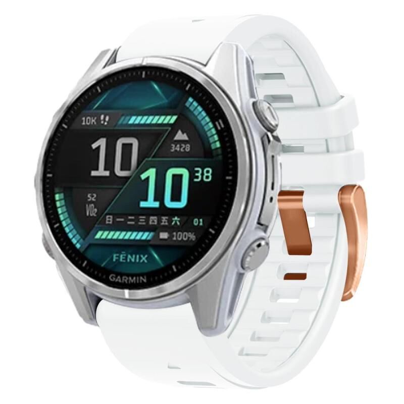 Για το Garmin Fenix 8 AMOLED 43mm Rose Gold Steel Buckle Quick Release Silicone Watch Band (Λευκό)