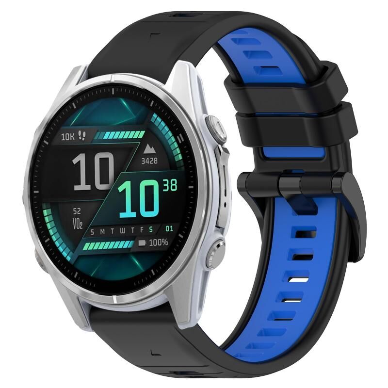 Για Garmin Fenix 8 AMOLED 43mm Αθλητισμός Δύο χρώματα 20 χιλιοστά σιλικόνης ρολόι μπάντα (μαύρο + μπλε)