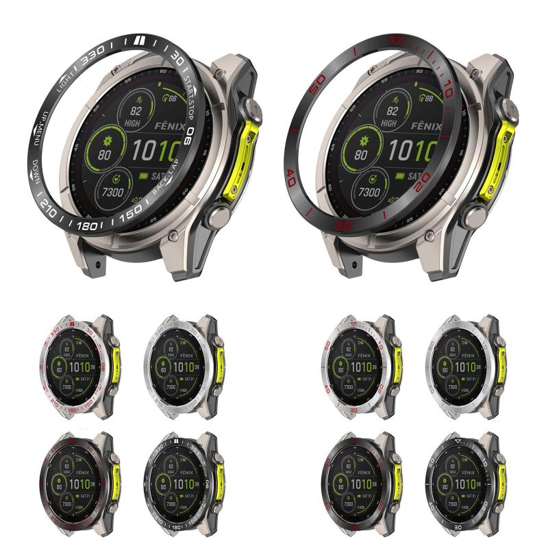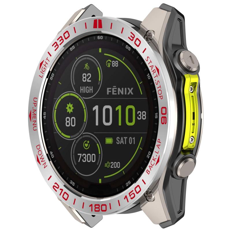 For Garmin Fenix 8 AMOLED 43mm Stainless Steel Metal Watch Protective Ring(Compete Speed Silver Red)