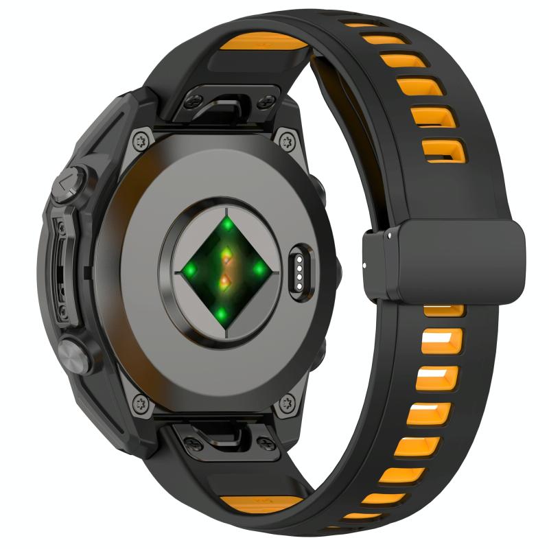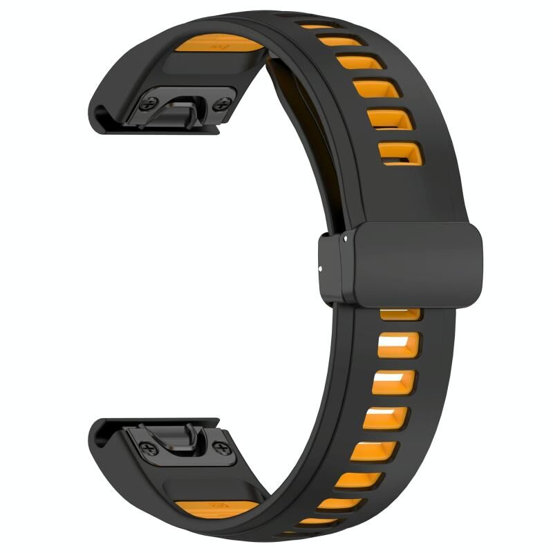 Για Garmin Fenix 8 AMOLED 43mm Διχρωμη Μαγνητική Σιλικόνη Λουράκι Ρολογιού (Μαύρο+Πορτοκαλί)