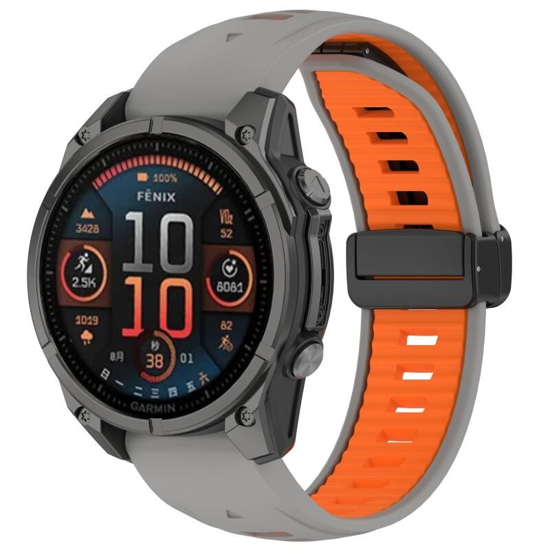 Για Garmin Fenix 8 AMOLED 43mm Διχρωμη Μαγνητική Σιλικόνη Λουράκι Ρολογιού (Stralight+Πορτοκαλί)