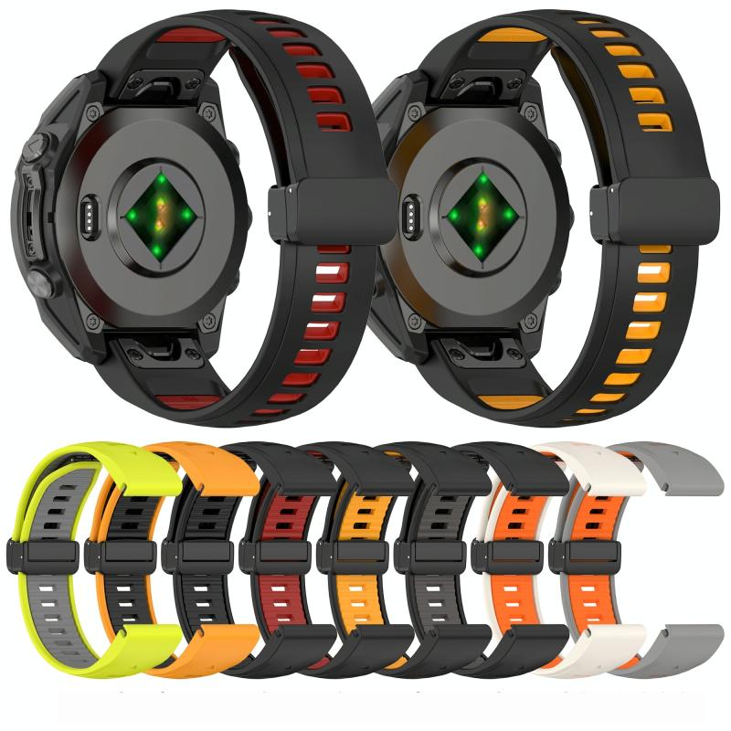 Για Garmin Fenix 8 AMOLED 43mm Διχρωμη Μαγνητική Σιλικόνη Λουράκι Ρολογιού (Stralight+Πορτοκαλί)