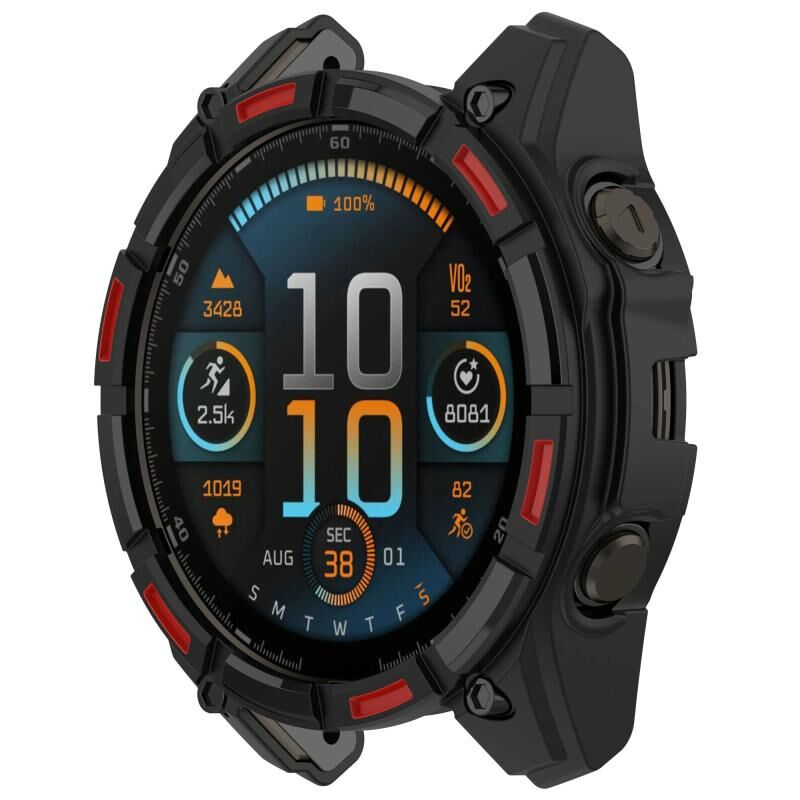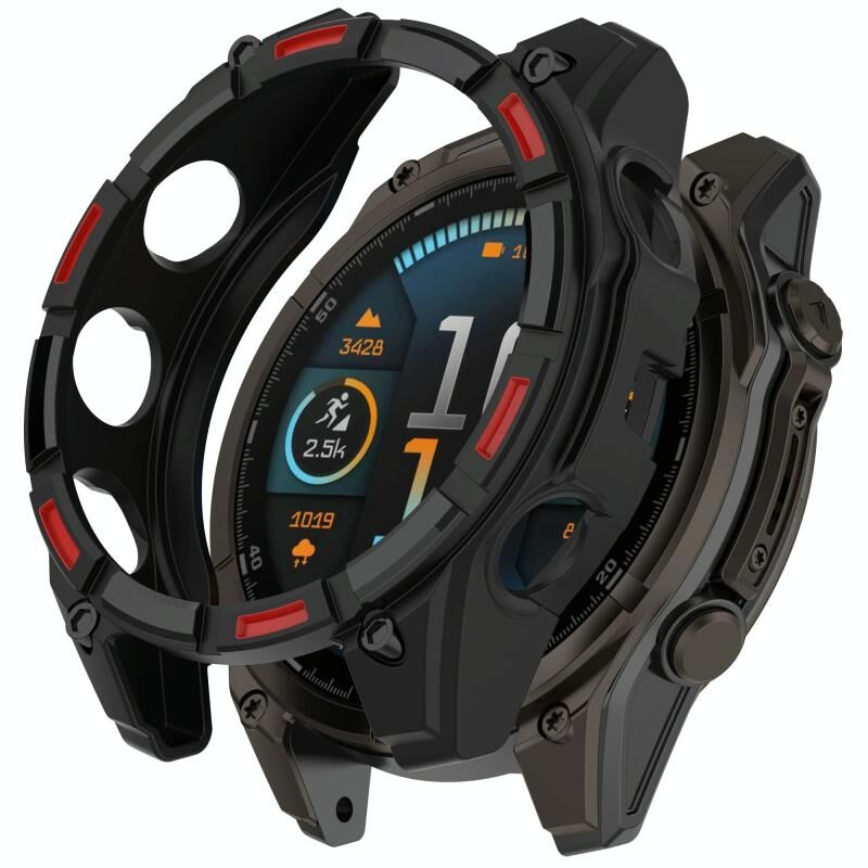 Για Garmin Fenix 8 AMOLED 47mm Armor κοίλο TPU μισή κάλυψη ρολόι προστατευτική θήκη (μαύρο κόκκινο)
