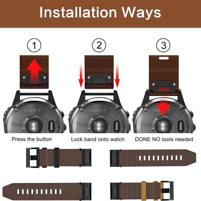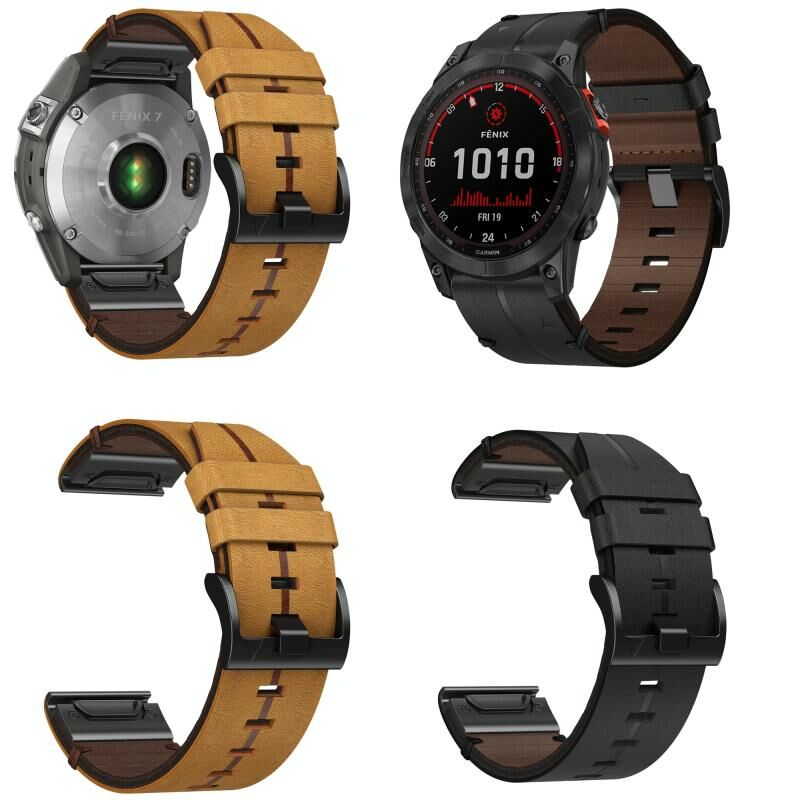 Για Garmin Fenix 8 AMOLED 47mm Δερμάτινο Λουράκι 22mm Υφής (Καφέ)