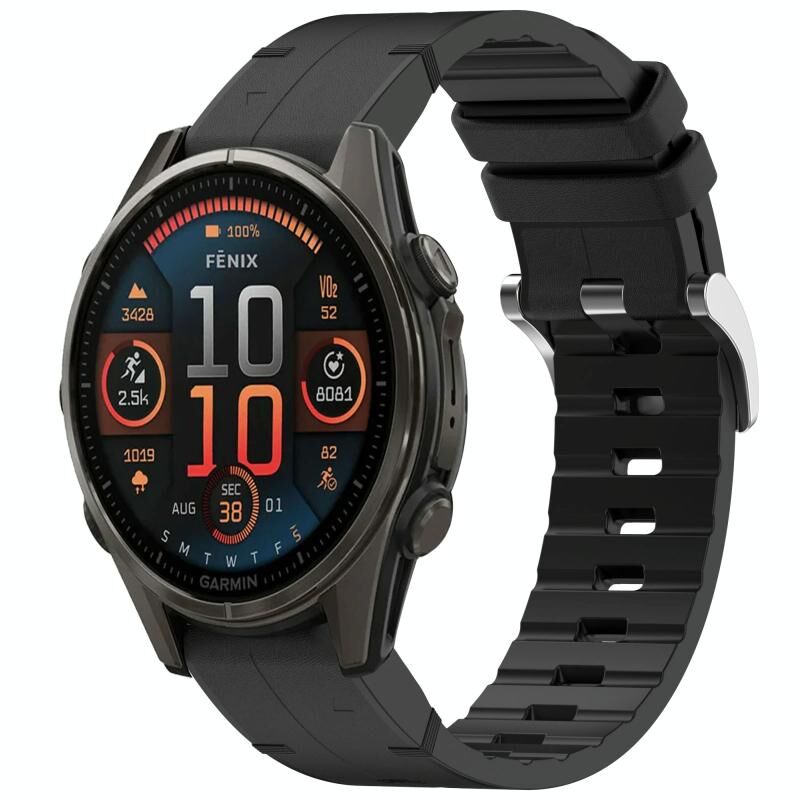 Για Garmin Fenix 8 AMOLED 47mm γρήγορη απελευθέρωση πόρπη 22mm σιλικόνης δερμάτινο λουράκι ρολογιού (μαύρο)