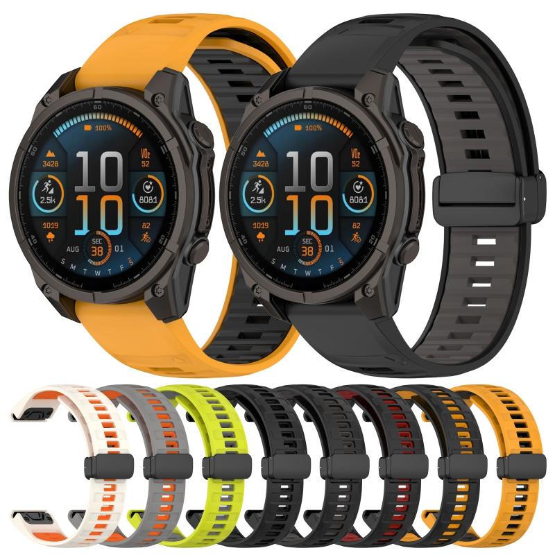 Για Garmin Fenix 8 AMOLED 47mm Διχρωμη Μαγνητική Σιλικόνη Λουράκι Ρολογιού (Μαύρο)